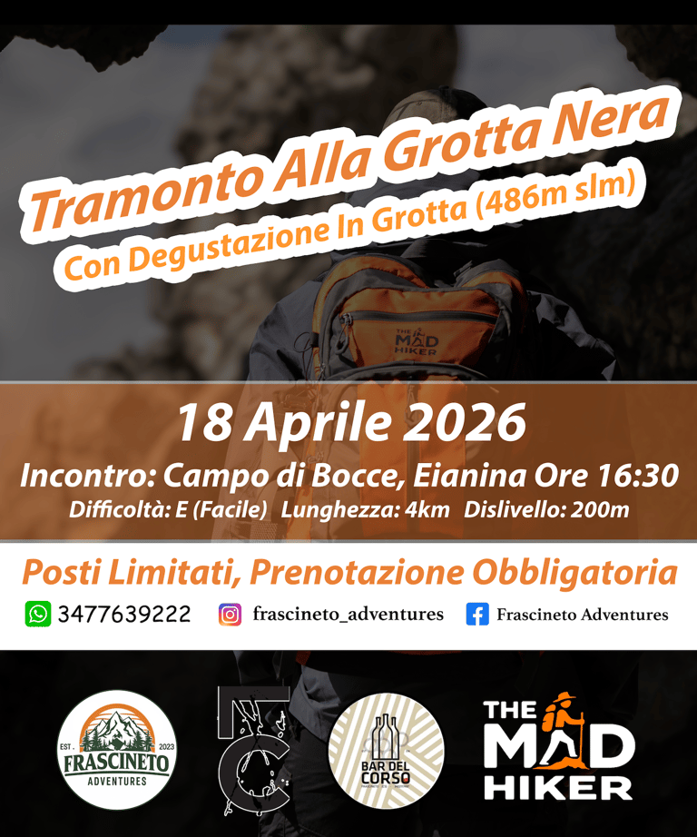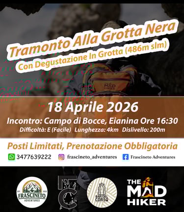 Vi invitiamo a vivere un’esperienza unica immersi nella natura! Sabato 18 aprile ci ritroveremo per un’escursione al tramonto alla Grotta Nera, con arrivo alla suggestiva Rocca, a quasi 500 metri di quota.